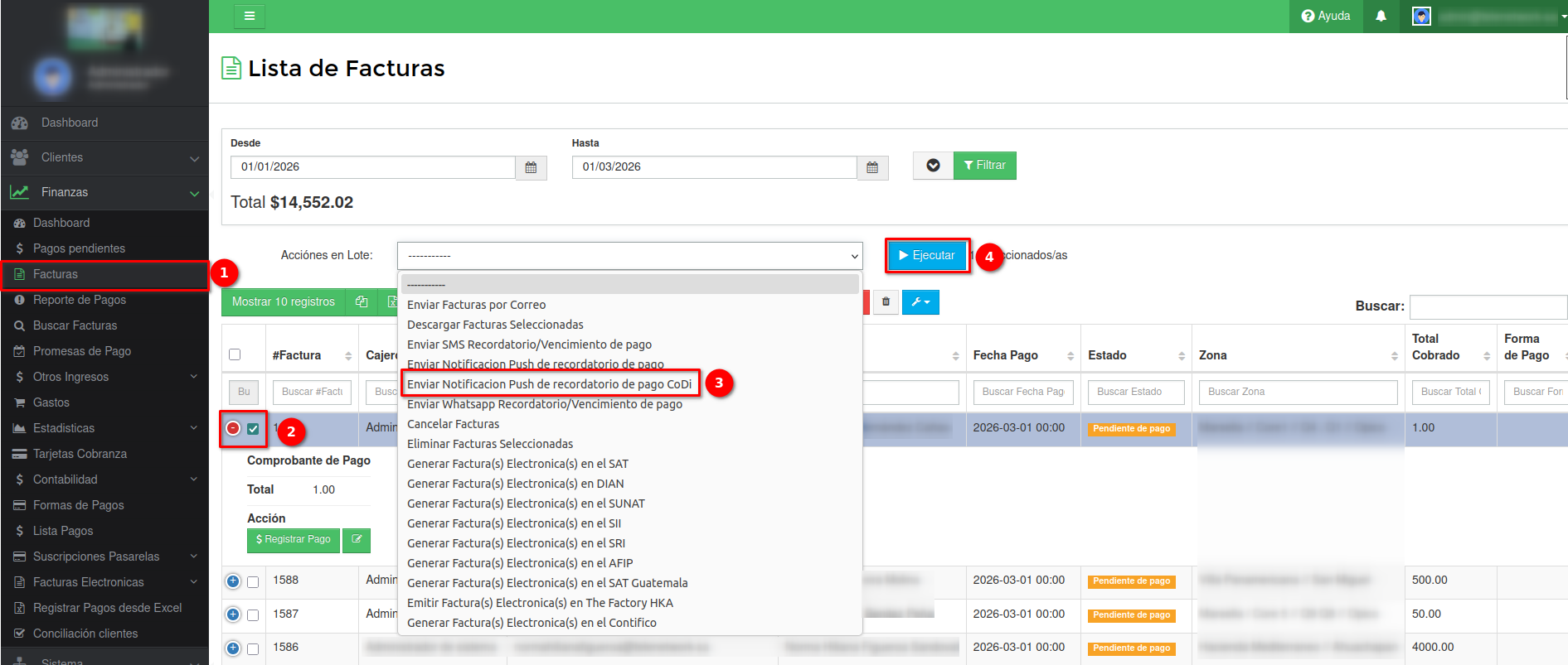 Factura PDF, Recibo de pago, Confirmación y Recordatorio de pago