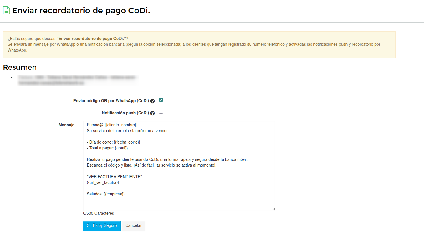 Copiar y pegar este codigo en la plantilla Aviso de pago - Aviso de Corte